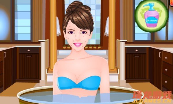 操作简单:鼠标拖拽使用洗浴用品,点击切换场景。每个步骤有动画反馈,错误操作会有提示。